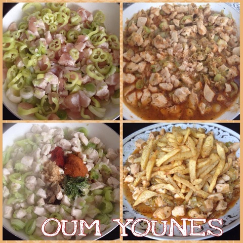 Doe een scheutje olie in de koekenpan en bak daarin Prei, paprika en kipfilet met wat zout voor ongeveer 5 min met de deksel op de pan. Roer het in tussentijd wel steeds om. Daarna doe je er kruiden bij 150 ml kokend water en laat je het geheel koken tot het gaar is.